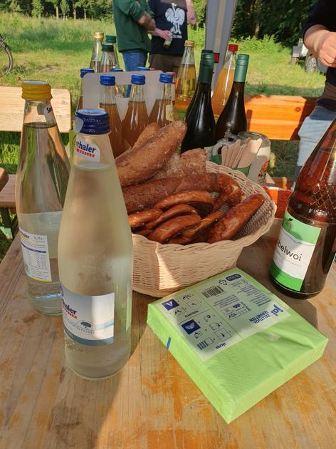 Nach dem Spaziergang kehrten wir zu einer gemütlichen Wiese zurück, wo wir den Tag bei leckerem Apfelwein und regionalen Spezialitäten ausklingen ließen.