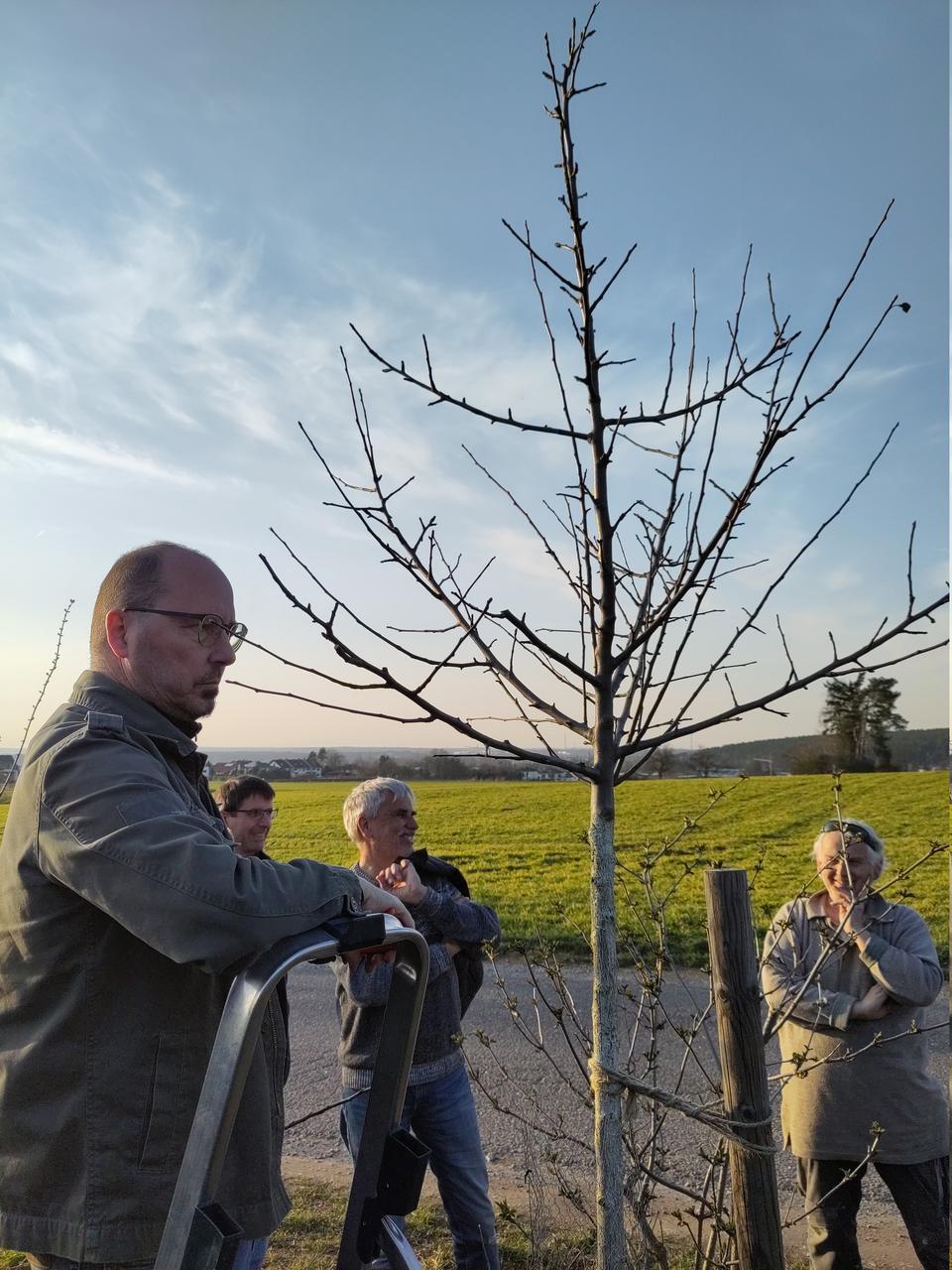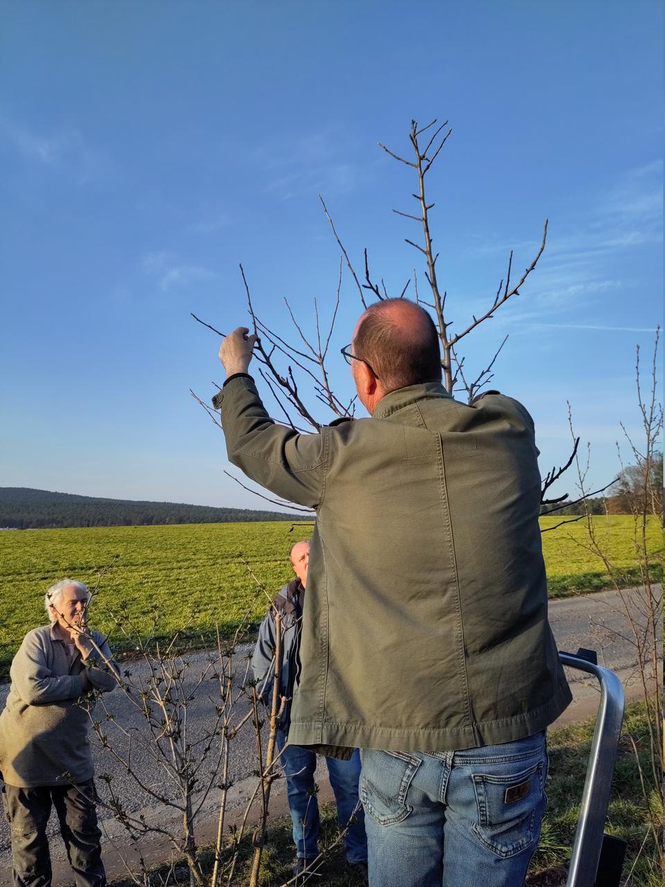 Das Interesse war groß, und es entwickelte sich eine lebhafte Diskussion über die richtige Schnitttechnik und die Bedeutung des Erziehungsschnitts für die Entwicklung des Baumes.